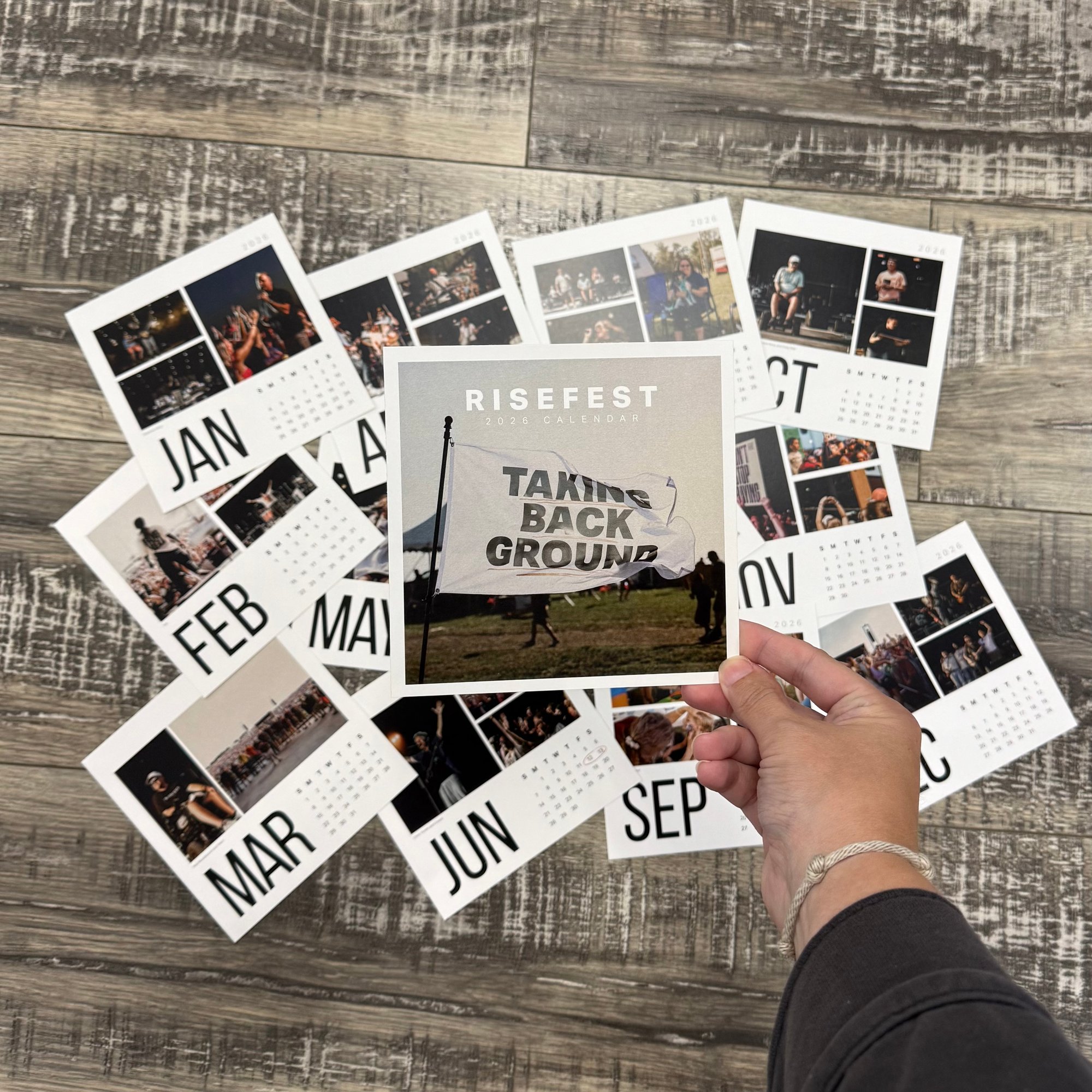 Keep the heart of RiseFest with you all year long! This 12–month desk calendar features powerful photos from our 2025 festival, capturing moments of worship, community, and celebration. With a bold “Taking Back Ground” cover design, it’s the perfect reminder of faith and encouragement.