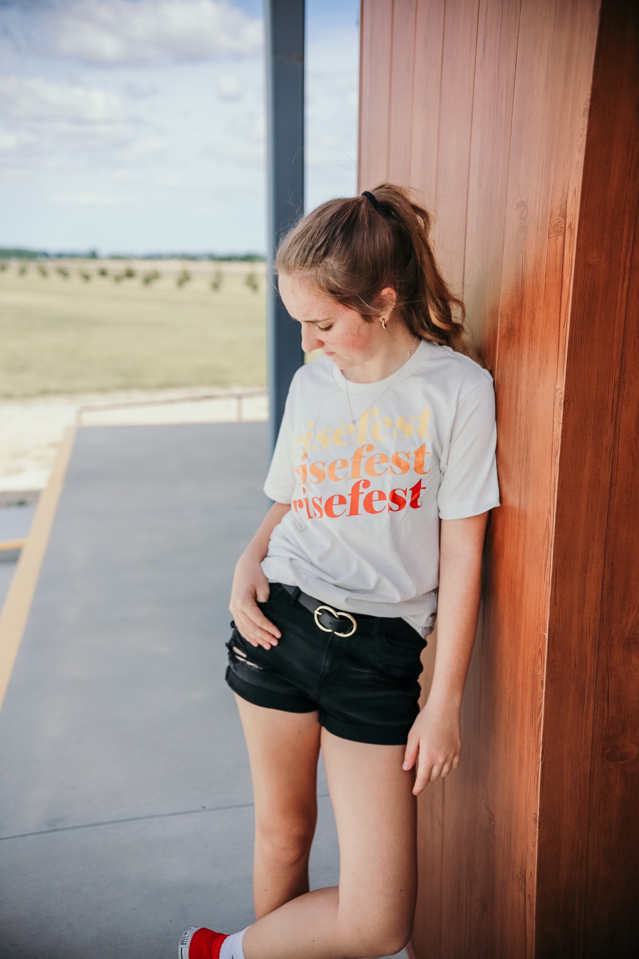 Catch the glow. The Sunset Stack Tee features a warm fade of yellow, orange, and red — just like a RiseFest evening under open skies. With its relaxed fit and retro-styled stacked logo, this shirt brings that end-of-day peace and purpose into your everyday look.